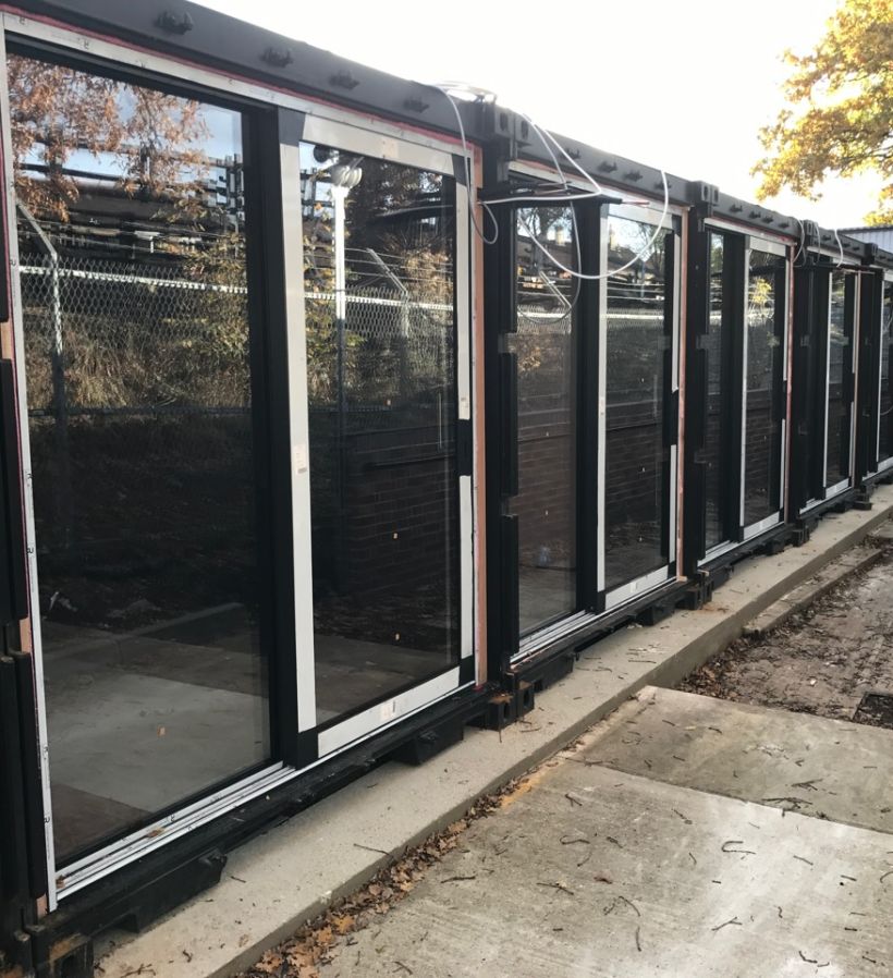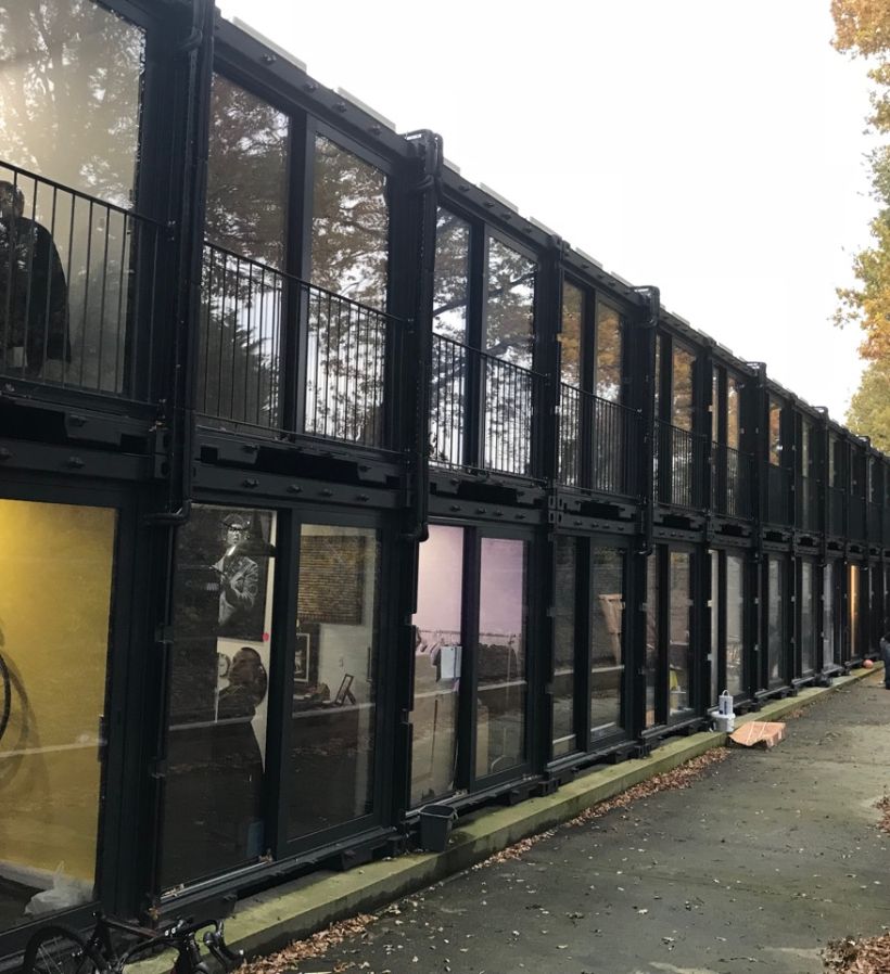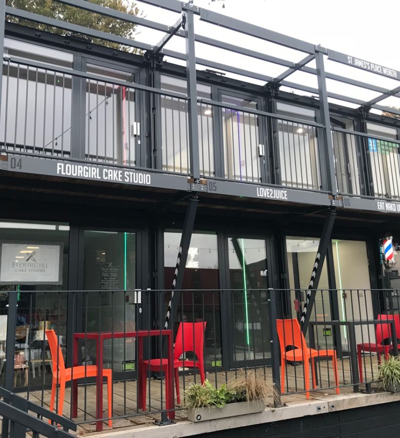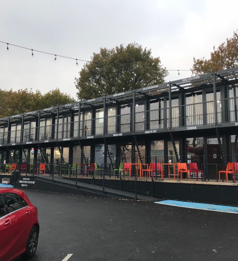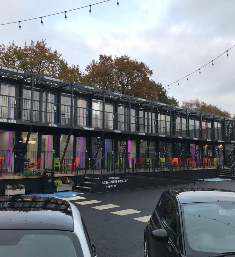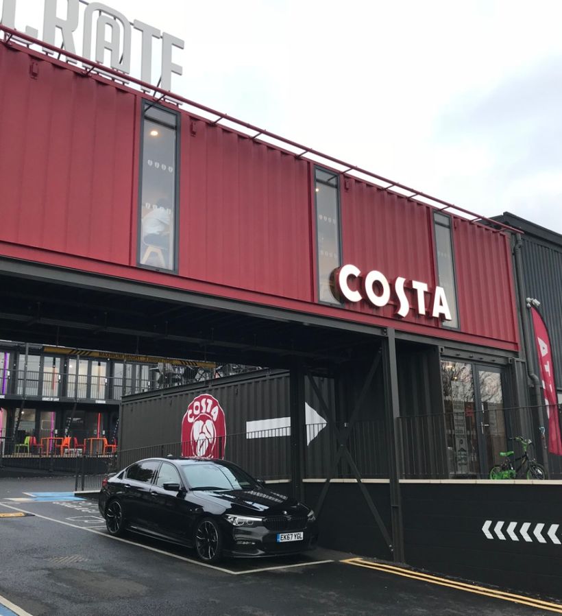 Flexwood supplied and installed 36 sets of Reynaers Aluminium CP155 Sliding doors and CS68 Hinged PAS24/Secured-by-Design rated entrance doors to the front and back of each 40' container in this exiting development. For Costa Coffee unit, we supplied and installed doors and fixed glazed screens. which was the brainchild of Crate founder Adam Walker.