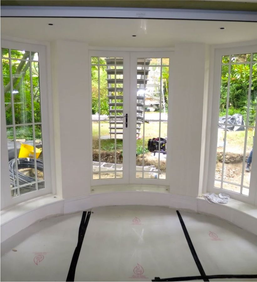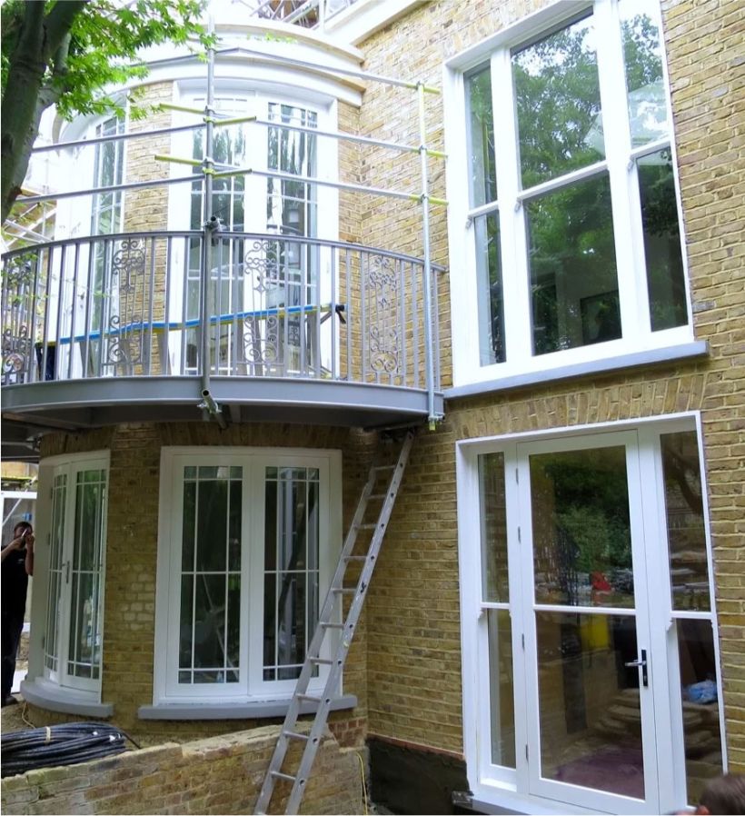 Flexwood undertook surveys, supplied and installed a combination of traditional weighted box sash windows with slimline double glazing with putty fronting, casement windows, doors contained within box window frames and also very bespoke fully curved windows and doors. Glass was supplied with specialist solar coatings to minimise the effect of direct sunlight.